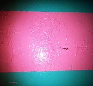 | 하자 현상 | 우레탄 도막의 미경화 발생 (변색, 도막 밀림) |